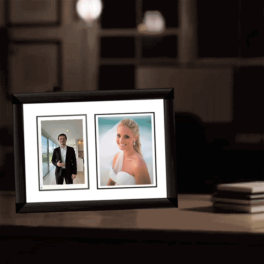 The Vuephoria™ vFrame is the world’s first premium, cord-free digital smart video frame that accepts an unlimited number of videos wirelessly sent from your cell phone. Combined with the photo(s) of your choice, the vFrame transforms home and office decor into an emotional, memory-refreshing experience. It’s a one-of-a-kind keepsake handcrafted for reliving life’s most cherished moments.